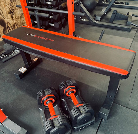 Stable flat bench, perfect for benching or dumbbell work.