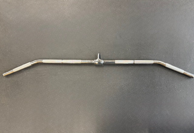The Revolving Lat Bar is designed to be used with any cable system. The bar is straight with angled ends, rubber end caps, and knurling for narrow and wide grips. Mild but even knurling combined with a 1" diameter is perfect for most users. A single "marker ring" is placed in the middle of each knurling section for quick even hand placement identification. This attachment is good for commercial or home use.